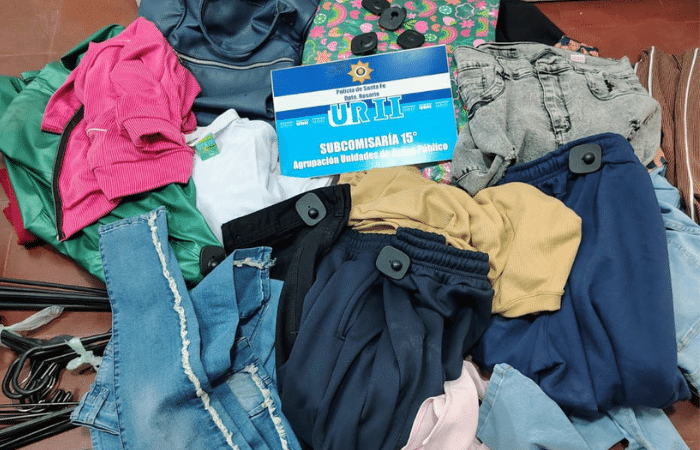 El procedimiento arrojó resultados positivos. En el domicilio allanado se secuestraron diversas prendas de vestir con alarmas y etiquetas, además de un bolso que había sido señalado en las imágenes registradas por las cámaras. También se hallaron prendas con etiquetas de comercios de otras localidades, entre ellas General Lagos y Villa Gobernador Gálvez.